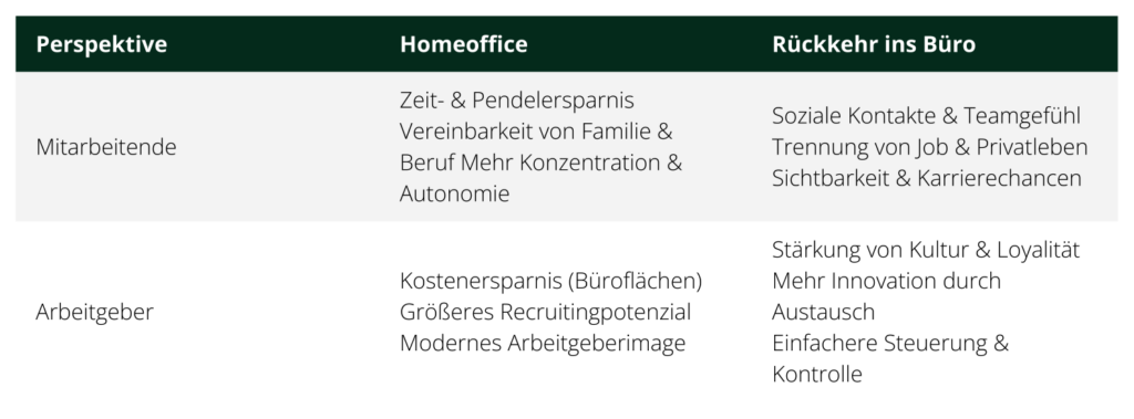 Die Vorteile von Homeoffice und Präsenz aus Sicht beider Parteien