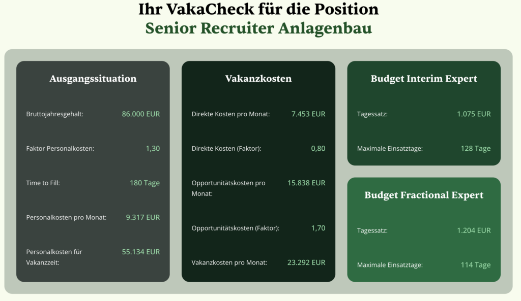 - Kosten Interim Recruiter: 18.000–20.000 EUR pro Monat