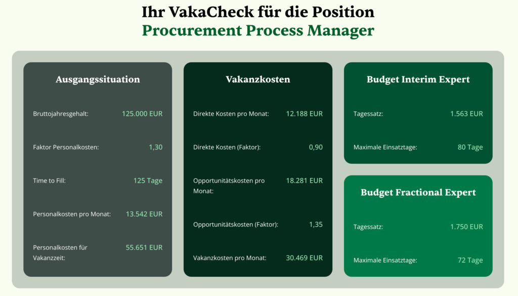 Zum Projektstart war eine vakante Position als Procurement Process Manager in Festanstellung geplant. Ohne diese Besetzung drohten Verzögerungen in der Prozessanalyse und eine Gefährdung des Starttermins der SAP-Ariba-Implementierung.